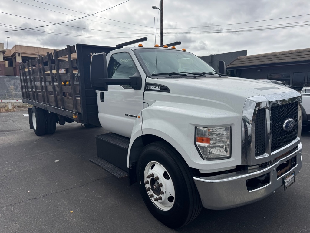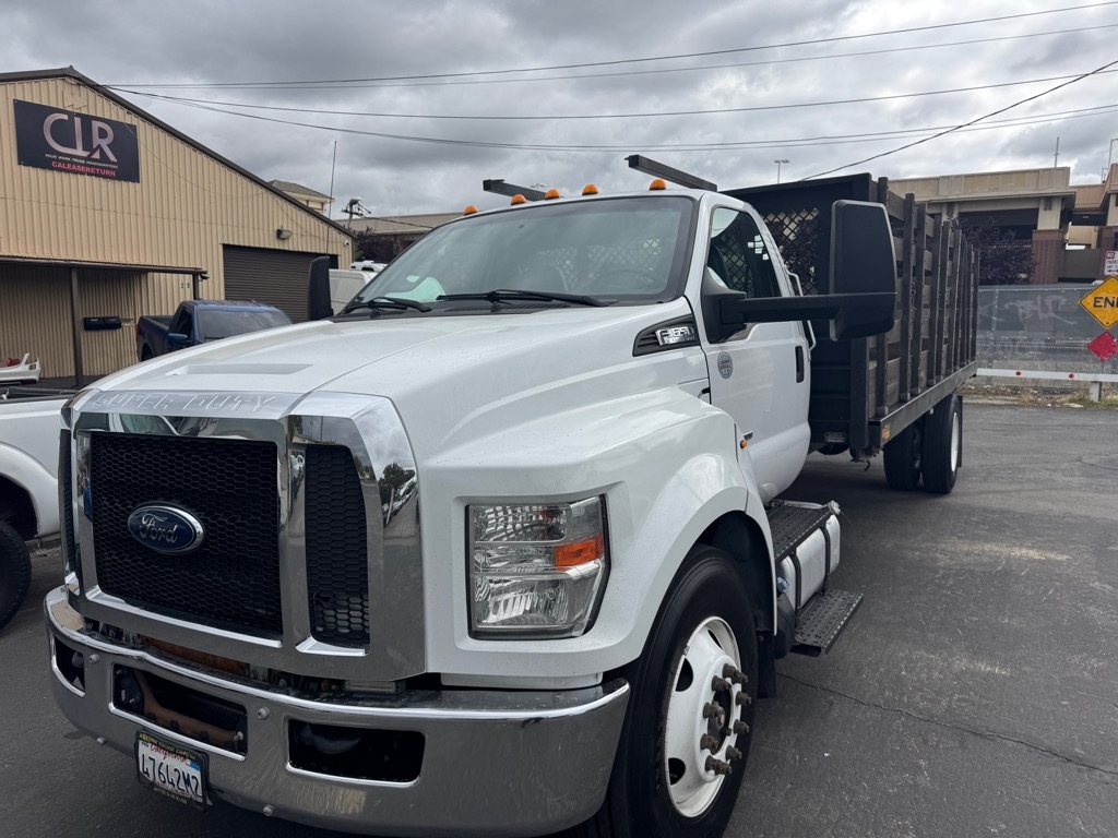 2017 Ford F650 Stakebed Flatbed 20ft, 6.7 CARB Compliant Diesel, auto transmission, airbrakes, air seat, only 91k mi, interior Like NEW, pwr windows and doors, a/c, am/fm stereo, Cruise control, bluetooth, 25999 GVWR can be driven with a normal drivers license, Truck is Ready to Work!!!!!Visit CA Lease Returns online at www.caleasereturns.net to see more pictures of this vehicle or call us at 925-260-0797 today to schedule your test drive.